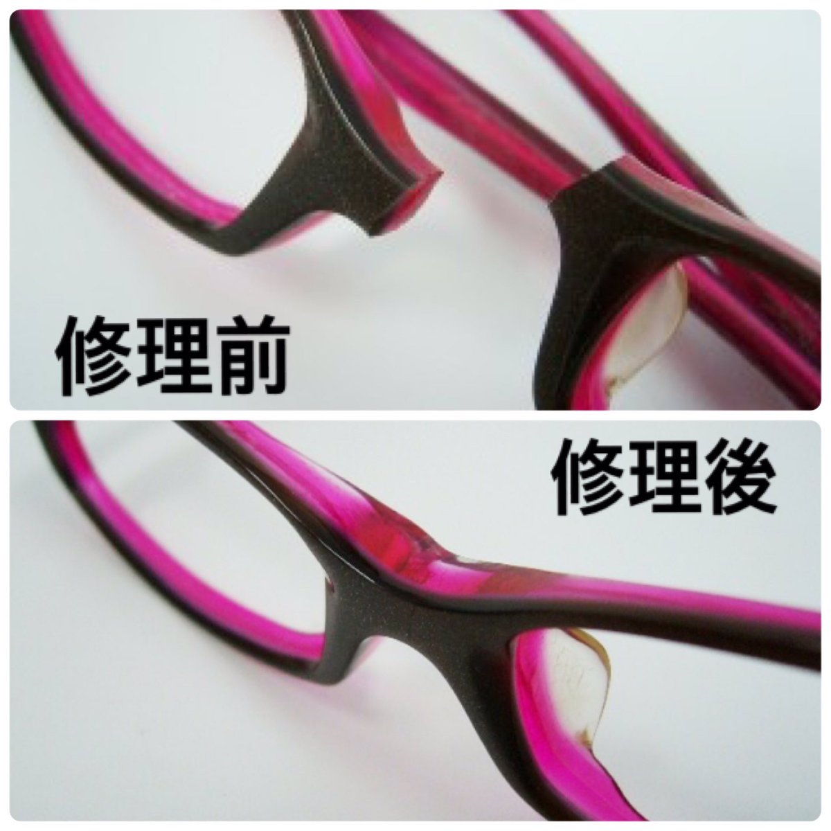 Eyewear Shop Ami 岐阜県関市の眼鏡屋 スタッフ音久 W En Twitter 定期 メガネの修理相談承ります プラスチック製フレームのメガネが折れた時 接着剤 は絶対使わないで下さい フレームを溶かし フレーム レンズ共にダメージを与えます 補修するなら